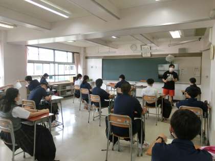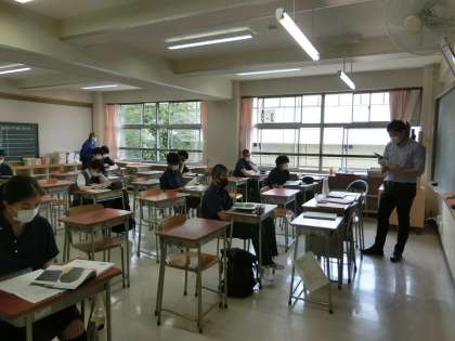 本日は2年生と3年生の分散登校日でした。2年生の授業では、オリエンテーションを中心に活動を行いました。3年生の授業では、本日から英語の授業外でのALTの先生がクラスに配置されました。生徒は授業中や休み時間に、積極的に英語を使ってコミュニケーションを取っていました。