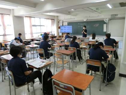 1年生は入学後、初めての教科の授業でした。授業の進行方法などのガイダンスをしっかり確認できました。