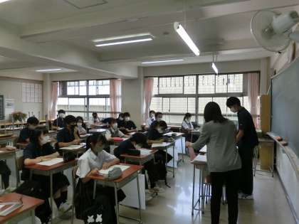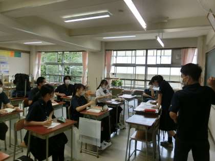 今年初めての専門委員会がありました。生徒会本部と各委員会がスローガンや今後の活動予定について話し合いました。