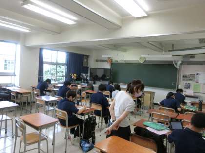 昨日より「放課後学習教室」が始まりました。本日は英語の学習教室がありました。生徒が積極的に質問する姿がみられました。期末考査に向けて、各自が最善を尽くしています。