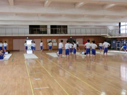 現在、体育の授業では全学年ともに女子が「バレーボール」、男子が「器械運動」をしています。体育で運動できる機会を大切にして一生懸命取り組んでいます。