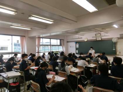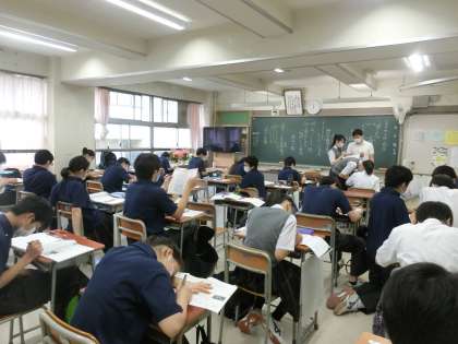 明日から1学期期末考査が始まります。授業の中では、積極的に質問する姿や生徒同士で教え合う姿がみられました。写真は、左から1年社会、2年英語、3年国語の様子です。