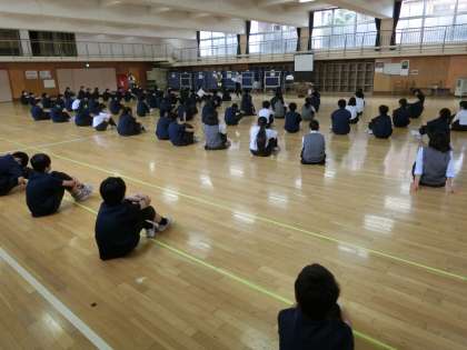 本日、終業式後に体育館で学年集会を行いました。学級委員から、各クラスの反省や1学期の振り返りについて話がありました。学年の先生からは、夏休み中の学習・生活、今後の学校行事等について話をしました。全体をとおして、褒められた部分を2学期にはもっと成長させ、まだ足りない部分は改善できるように、学年全体の課題として取り組んでいきます。
