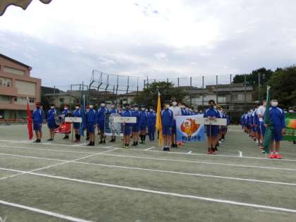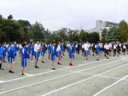 昨日天候不順で準備ができなかったため、本日の朝係生徒で準備をして、予定より1時間ほど遅れて運動会予行練習が始まりました。
