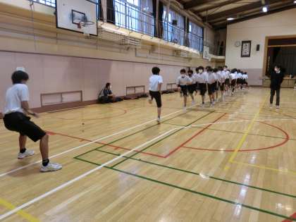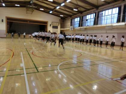 本日は雨天のため、1年生は体育館で放課後練習を行いました。