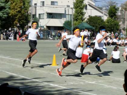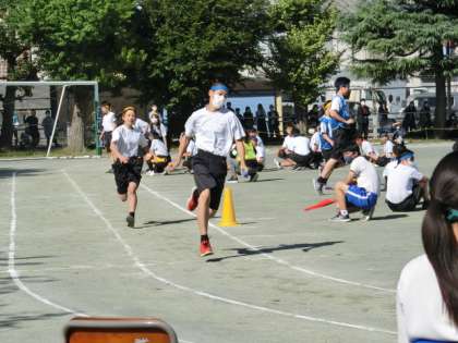 教室で見せるリラックスした顔つきとは異なり、真剣勝負の様子が随所に見られました。次の駒留中を背負うのは自分たち、との自覚が芽生えた、かも知れません。順位は、1位赤色1組、2位青色2組、3位黄色3組です。