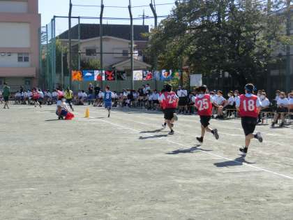 1〜3年生の代表生徒女子が走ります。生徒席からの応援にも熱が入ります。1年生女子で歴代記録が更新されました。