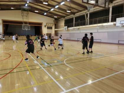 写真は、バスケットボール部、野球部、バドミントン部の活動の様子です。