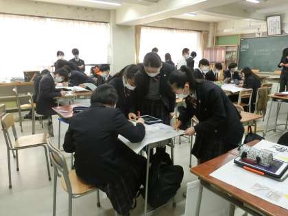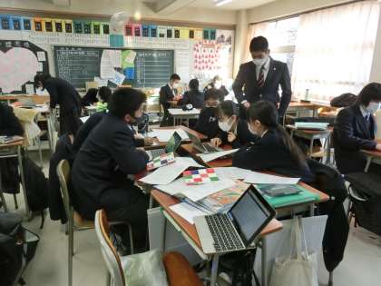 本日の5校時目、3年生は修学旅行のコースマップ作りを行いました。パソコンや本などを用いて、各班で巡るコースを決定しました。班で協力して1枚の画用紙にまとめました。