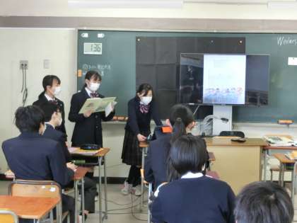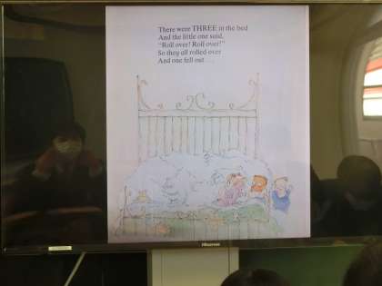 2年生の英語の授業で絵本の読み聞かせを行いました。しっかり練習してグループで発表しました。