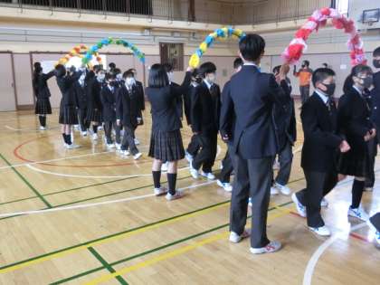 4月8日午後「新入生歓迎会」が行われました。体育館は、1年生と担当の2,3年生。他の2.3年生は各学級からZOOMで参加しました。