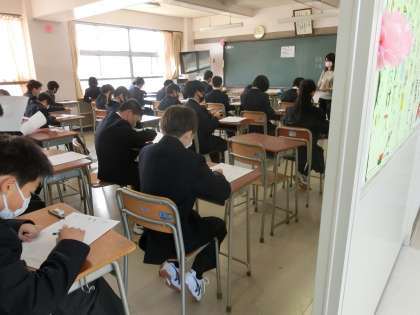 4月9日(金)学習習得確認調査を実施しました。2・3年生は1校時から5校時まで国語・社会・数学・理科・英語の5教科の調査でした。国語と英語にはリスニングテストもありました。1年生は入学3日目に午前中4教科のテスト(国語・社会・数学・理科)だったので、緊張し疲れたかもしれません。真剣に取り組んでいました。