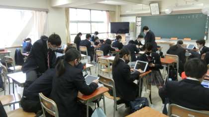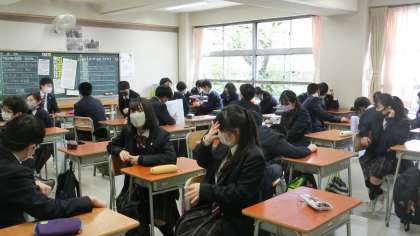 3年生はクラス目標を決めました。最上級生になった自分たちにふさわしい目標をさまざまな方法で考えていました。全員で決めた目標に向かって、駒留中での最後の1年を過ごしてほしいです。決まった目標は、