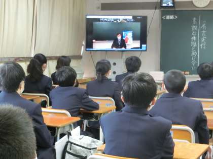 今年最初の土曜授業日、セーフティ教室を実施しました。各教室で、世田谷警察署の方々の講話やビデオをZOOM配信で視聴し、スマートフォン、インターネット犯罪に関するトラブルに巻き込まれないよう注意すべきことなどを学びました。同じ内容を保護者の方も多目的室で視聴していただきました。実際のトラブルを題材にしたビデオの内容や署員の方々の話はとても現実味があり、身近なところに危険が潜んでいることを実感する時間となりました。