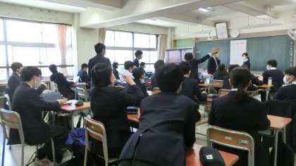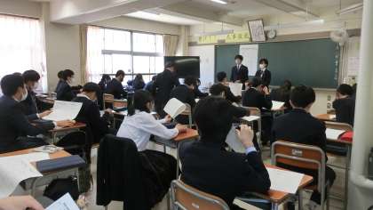 総合的な学習の時間で、3年生は修学旅行の事前学習を行います。今日がその第1回目。各クラスの修学旅行実行委員が学習の進め方などを指示しています。京都や奈良の寺院や神社、名物などについて調べ、新聞にまとめていきます。中身の濃い事前学習の新聞ができるといいですね。