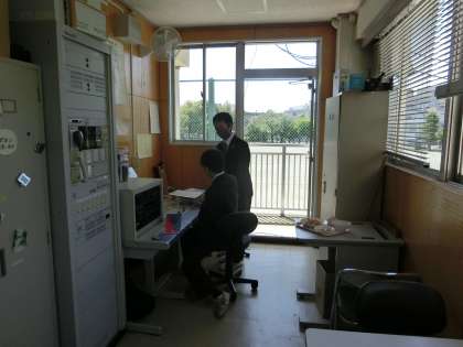視聴覚委員会の活動の様子です。お昼の放送に1年生も参加し始めました。先輩たちにいろいろなことを教わりながら仕事を始めています。