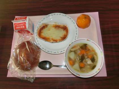 6月17日の給食のメニューは「黒砂糖パン、スコッチブロス、シェパーズパイ、冷凍みかん、牛乳」です。