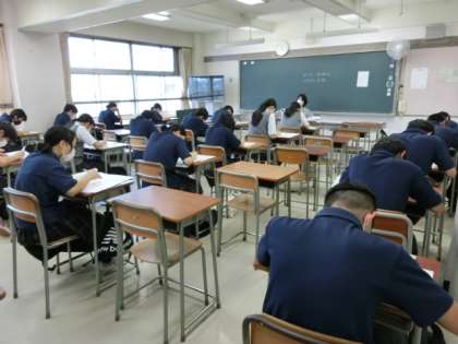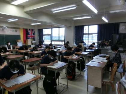 今年度1回目の検定試験となる漢字検定を実施しました。今回は受検者が多く、例年の南校舎から、普通教室のある北校舎に会場を移しています。学校支援コーディネーターの方々が中心となり運営と監督を行っていただいています。検定試験は年間5回(漢検3回・英検2回)本校を会場にして実施します。詳しくは学校ホームページでご確認ください。(「学校だより5月号」にも関連内容があります。)