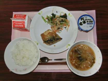 7月13日の給食のメニューは「ごはん、魚のごまだれかけ、みそ汁、おひたし、ヨーグルト、牛乳」です。