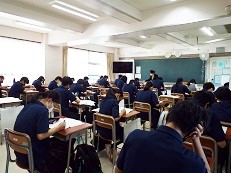 9月15日(水)朝学習 教科「日本語」現代は「新生代第四紀完新世」に当たるが、国際機関が「人新生」として独立させることを検討しているそうです。残念ながら戦争、開発、浪費で地球を汚染し、生態系を破壊し、気候変動や環境破壊を招いています。私たちの生き方を地球的視点で考えてみようという主旨の社説を読みワークシートに取り組みました。リモートの生徒はタブレットで読んでロイロノートという学習支援ソフトを使いワークシートをインターネットを通して学校に提出しました。いずれも真剣に取り組んでいました。
