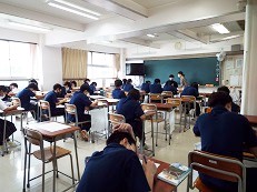 9月16日(木)6校時 総合 職業についてどんな仕事、なるためには、必要な資格、どんな人が向いているか、やりがいなどを調べて新聞にまとめることになりました。第1回はオリエンテーションです。リモートの生徒はteamsを通して参加しました。上級学校調べで作成した新聞よりレベルアップさせ読者が読みたくなるようなデザインやレイアウトを工夫しましょう。しっかり取り組んでいました。