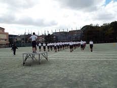 10月11日(月)1・2校時 体育 体育委員が中心になって、行進、校歌、学年種目の練習をしました。校歌は始めは声が出ていませんでしたが、練習の結果大きな声がでるようになりました。運動会のスローガンは「伝統継承〜変わらないものを大切に〜」でしたが、校歌の声の大きさで伝統の一つを継承したいものです。がんばりましょう。