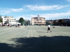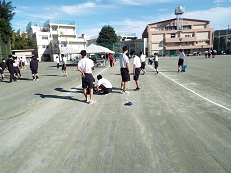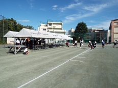 10月18日(月)午後 ライン引きです。メジャーで測りながら慎重にラインを引きました。ボランティア、体育委員、体育係の生徒が一生懸命に取り組みました。