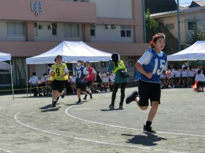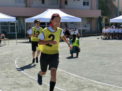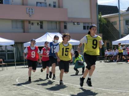 10分間の休憩後、競技が再開しました。各学年から女子代表生徒が走りました。トラックを5周走ります。徐々に疲れが出てきますが、すべての選手が最後まで走り切りました。