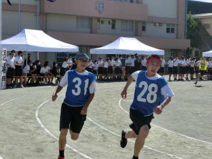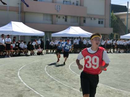 各学年から代表生徒が走りました。トラック10周を走りました。3年生がレースを引っ張る展開となりました。1000mを超えたあたりから各選手の表情が厳しくなり、全力を出して走る様子に応援も大きくなり、会場に一体感が生まれました。