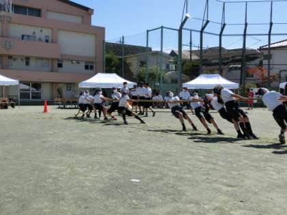 1年→2年→3年の順で競技しました。当日までの練習(予選)で勝ち上がったシードの学級(1年赤色1組・2年赤色1組・3年青色2組)と本日の予選で勝った学級が戦いました。決勝戦の勝者は次のとおりです。