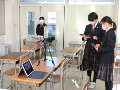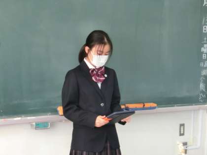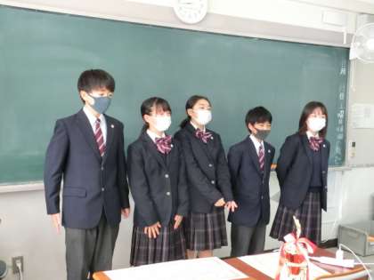11/15(月)月1回の生徒会朝会がありました。オンラインによる実施です。内容は盛りだくさんで、発表あり表彰ありで多くの該当生徒が配信会場に集まりました。