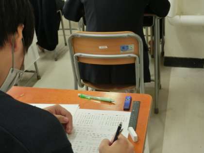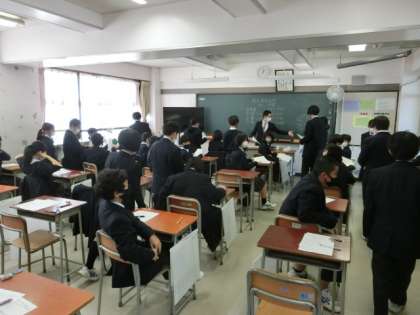 11/17(水)定期考査も中日になりました。本日は、以下の3教科が実施されました。左は考査中に教科の教員が確認に教室を回っているところ、右は本日の考査がすべて終わった直後の様子です。