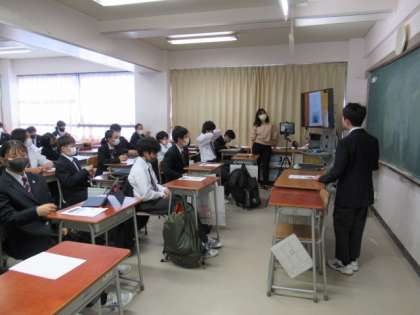 12月1日(水)5時間目、総合的な学習の時間に河口湖移動教室で撮った記録写真と自作の詩を組み合わせたポエムの発表を行いました。それぞれ工夫しながら詩と写真を組み合わせた作品をつくり、クラスで発表することができました。