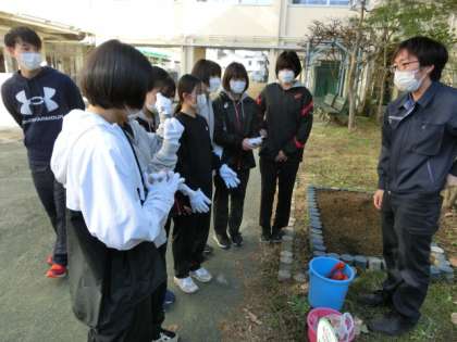 本日(12/11(土))3校時終了後、ボランティアによる「クリーン大作戦」(緑化・清掃活動)を実施しました。本校生徒、教職員、PTA、グリーンレンジャー支援隊の皆さん、総勢170名で学校敷地内や緑道、体育館倉庫などの清掃、校内花壇への球根植え付けを約1時間に亘り行いました。天気がよく暖かな土曜の午後、生徒たちは精力的に取り組んでいました。ご協力いただきました関係の方々、ありがとうございました。