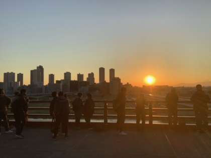 武蔵小杉のニュータウンから、新幹線の線路脇を歩き、多摩川の丸子橋を渡り、浅間神社からの紅葉や夕日などの写真撮影をしました。例年、川崎市主催の写真コンクールに応募しており、今年度もその素材を集めるべく、感染対策を意識しながら、校外で活動を行なっています。