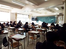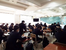 2月2日(水)朝学習 「コロナ禍にあっても、ひるまずに前に踏み出そう。一人の大人として、社会とどう関わり、責任を果たしていくか考える一日としたい。」という社説を読んでワークシートに一生懸命に取り組んでいました。リモートの生徒は家庭で課題に取り組みインターネットを通して提出しました。