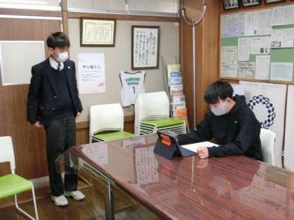 本日(2/7(月))の全校朝礼は校長室からのオンライン配信でした。はじめに校長先生から進路に向かう3年生へ、これまで携わってくださった方々への感謝の気持ちをもつことについて話がありました。続いて安全指導担当の先生から、自転車交通安全について、最後に生活指導担当の先生から、不要物を持ちこまないことについてそれぞれ話がありました。
