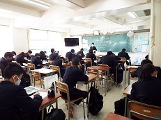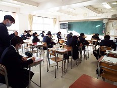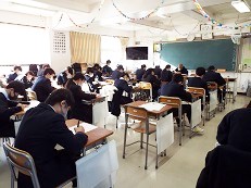 2月9日(水)朝学習 8千キロ離れた海底火山でいったい何が起こったのか。通常の津波とは違うメカニズムとみられるという社説を読んでワークシートに一生懸命に取り組んでいました。