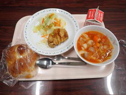 今日はパンです。チキンのマスタードソースかけが食欲を増します。