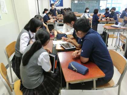 修学旅行に向けて取り組みが始まりました。2日目に行ってみたいところなどを班で検討を始めました。また、実行委員を中心に修学旅行の約束などを作るための意見の集約なども行われました。
