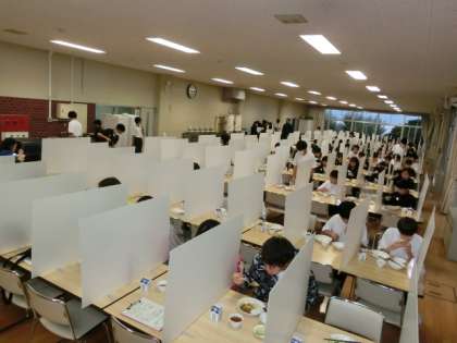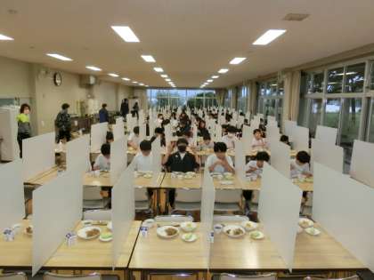 感染対策を十分に行いながらの夕食です。オリエンテーリングで体を動かしたせいか、カレーライスをあっという間にたいらげていました。この後は、入浴とレクレーションとなっています。