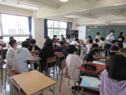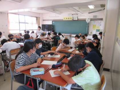 本日、1学年の2・3時間目は、1学期の個人反省とクラス反省を行いました。