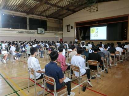 7月11日(土)2・3時間目に、3年生を対象に「卒業生の話を聞く会」を実施しました。本校の卒業生3名から、高校紹介や学校生活・受験に向けてなどの話をしていただきました。様々な視点からアドバイスをいただき、3年生にとってとても貴重な時間になりました。一人一人がメモをとりながら、じっくりと卒業生の話を聞いていました。先日の進路説明会での内容と合わせて、進路選択の参考にしてほしいと思います。