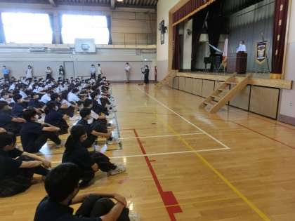 7月20日(水)、本日は一学期の終業式でした。明日からは夏休みになります。健康に気を付けて新学期に元気に登校してきてください。保護者の皆さまへ、一学期の間、本校の教育活動にご理解、ご協力いただき本当にありがとうございました。三者面談や新学期からも引き続きご理解、ご協力をよろしくお願い致します。