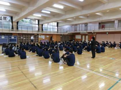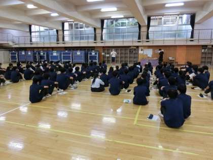 本日6時間目に格技室にて修学旅行に向けた学年集会を行いました。