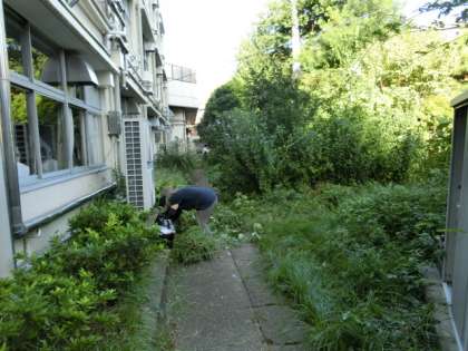 まだ残暑が厳しい中ですが、本校地域ボランティアのグリーンレンジャーの皆様が校舎の裏側部分の整美をしてくださいました。