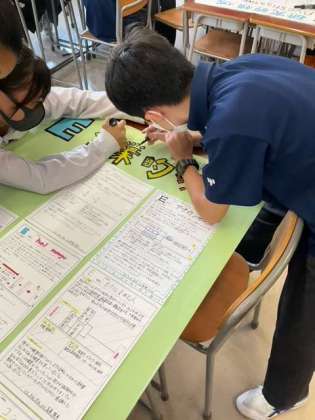 水曜日の?2年生は、各自調べた職業レポートを、レディネステストの6つの職業分類(RIASEC)ごとに集約し、掲示物を作成しました。2月実施の校内作品展に出展予定です。レディネステストとは、戦時中に米国のホランドという研究者が、労働者の職業の適材配置について研究したことから生まれた、個人の性格と職業適性に関する検査です。
