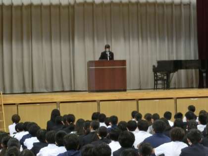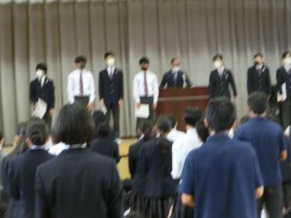 10月17日生徒朝会は生徒会役員、各委員の認証式でした。