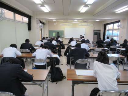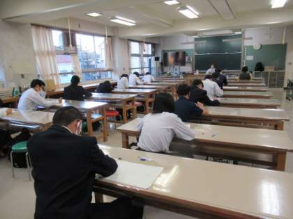 21日の放課後に、本校を会場として漢字検定を行いました。2級、準2級、3級、4級を合計45名の生徒が受検しました。受検する生徒の中には休み時間に問題集を片手に勉強した人、部活動を休んで勉強した人など、この日のために準備していました。