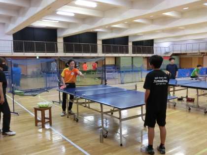 先週の金曜日、プロ卓球選手森薗政崇選手のお父様である森薗誠選手に本校卓球部の指導をしていただきました。部員一人ひとりとの指導に加えて、練習に対する心構えや意識して行っているプレイを無意識に行えるようにする大切さなどを教えていただきました。